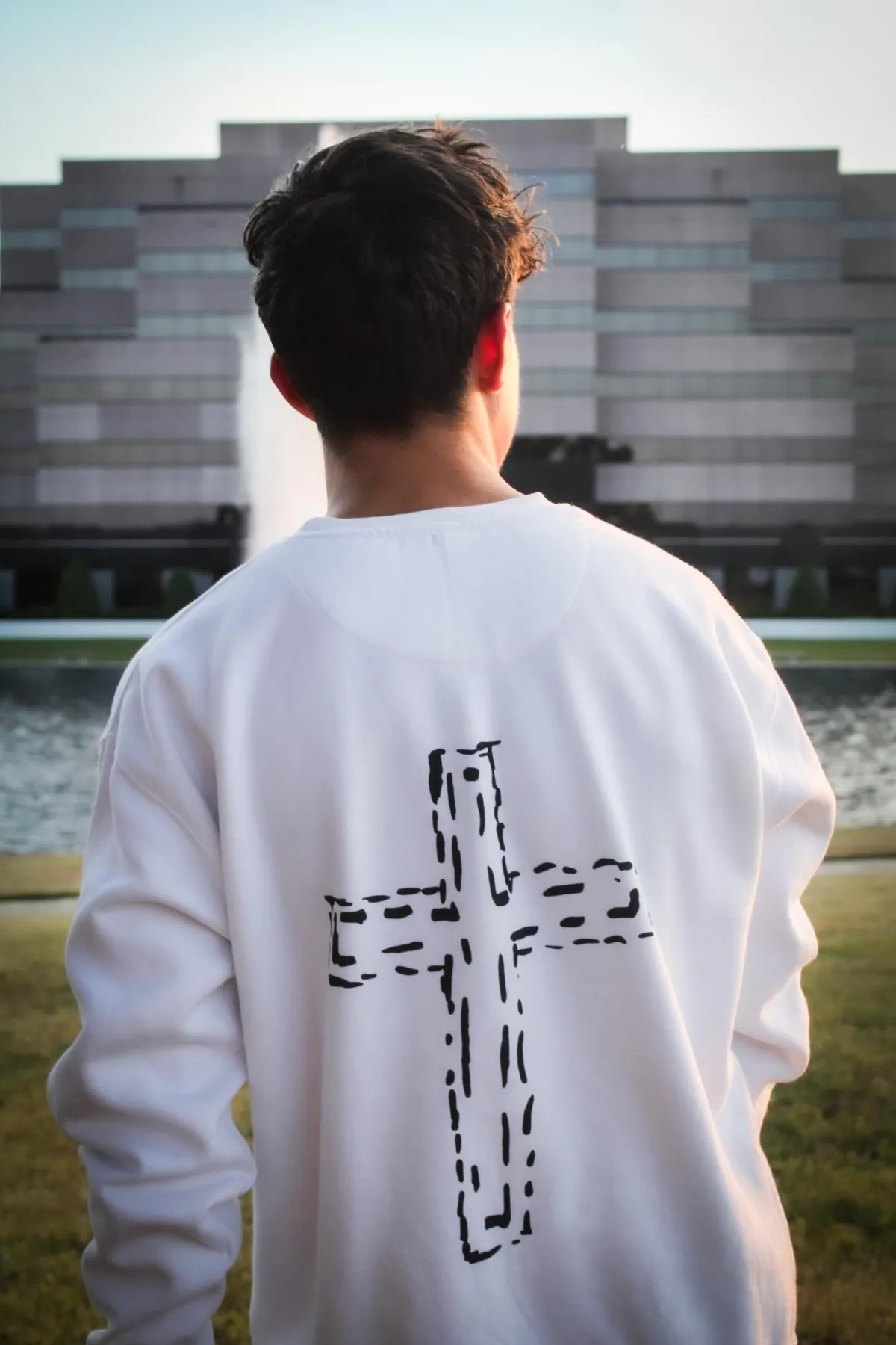"JESUS SAVED MY LIFE" Crewneck-White/Red
